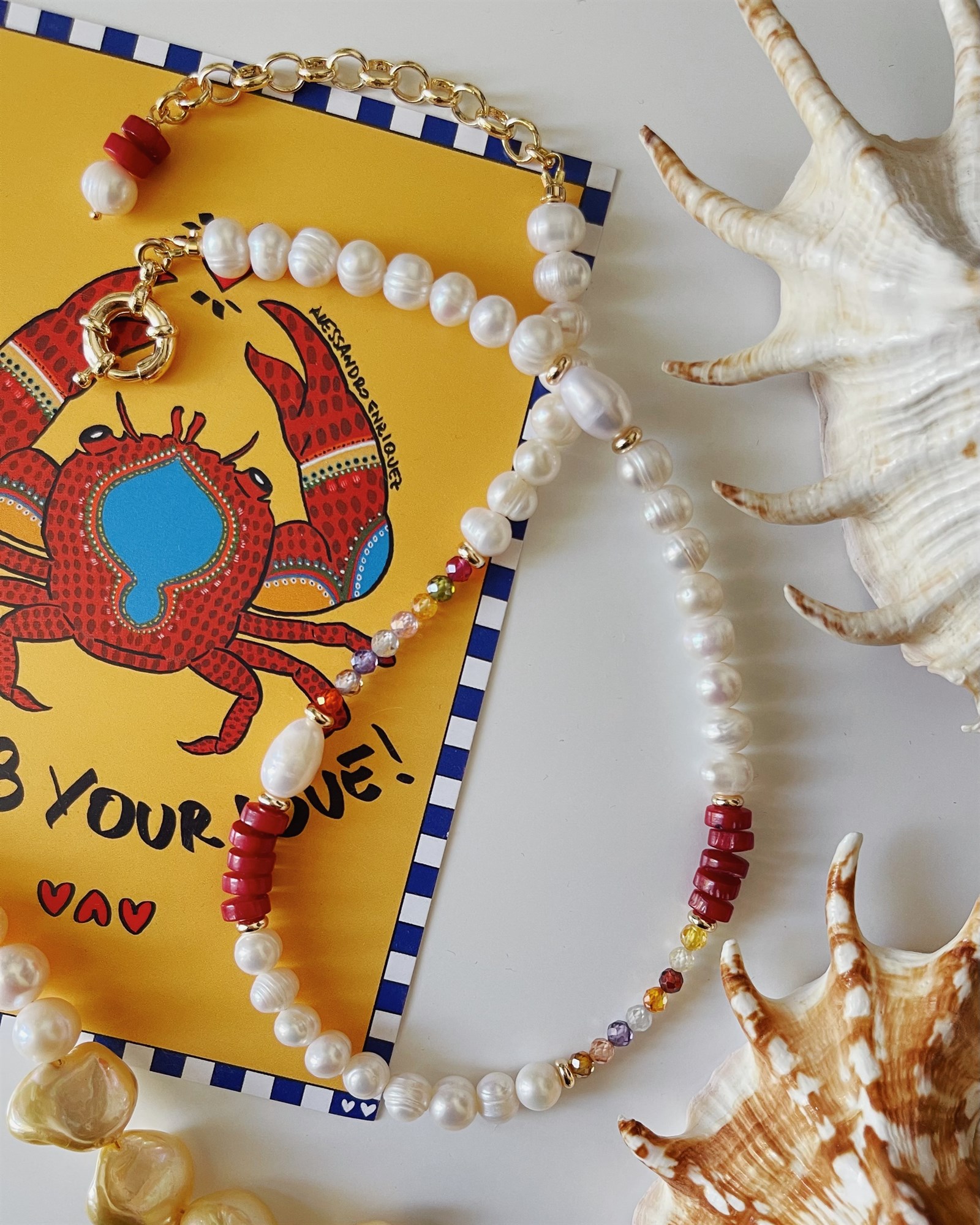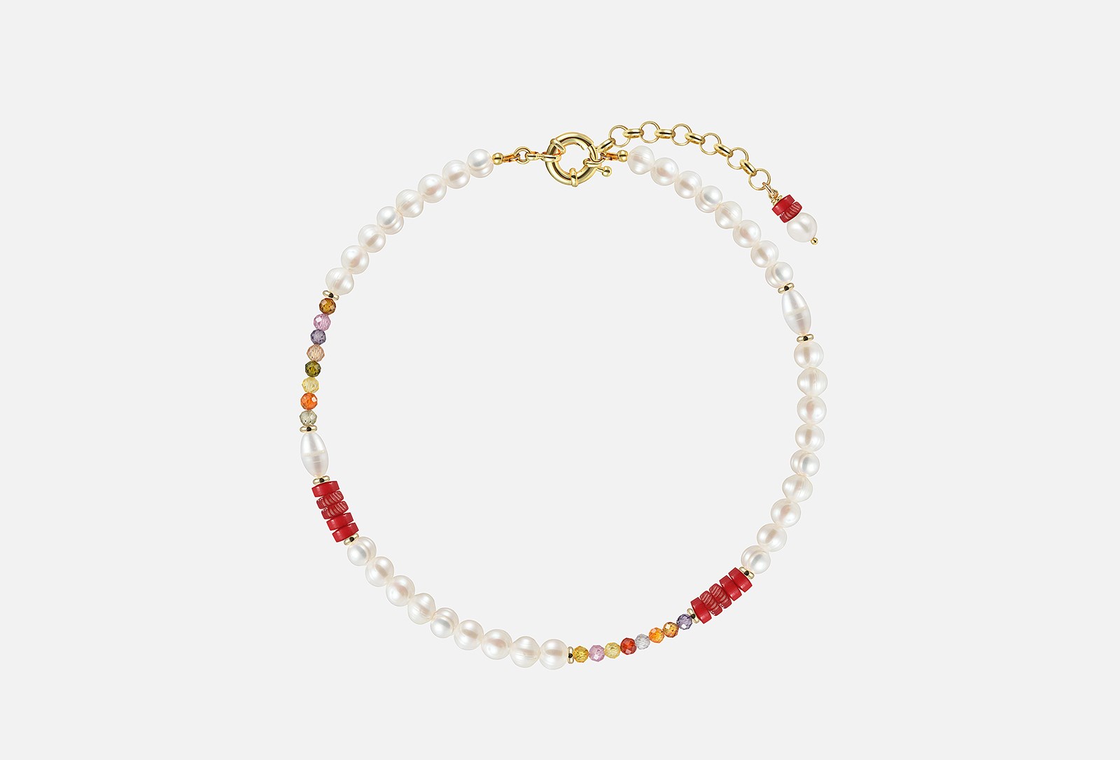 Колье (Латунь) гематит, бирюза, говлит, аметист, жемчуг чокер