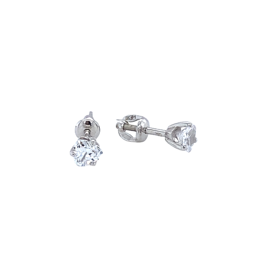 Серьги пусеты из белого золота 585 пробы с фианитами