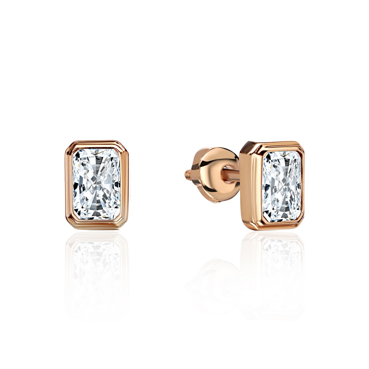 Серьги пусеты из белого золота 585 пробы с фианитами