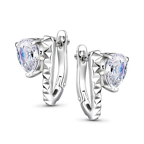 Серьги пусеты из серебра 925 пробы с позолотой, с фианитами