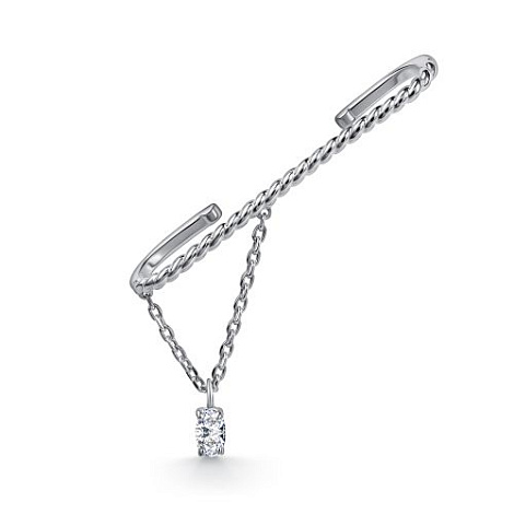 Моносерьга кафф из серебра 925 пробы с фианитом