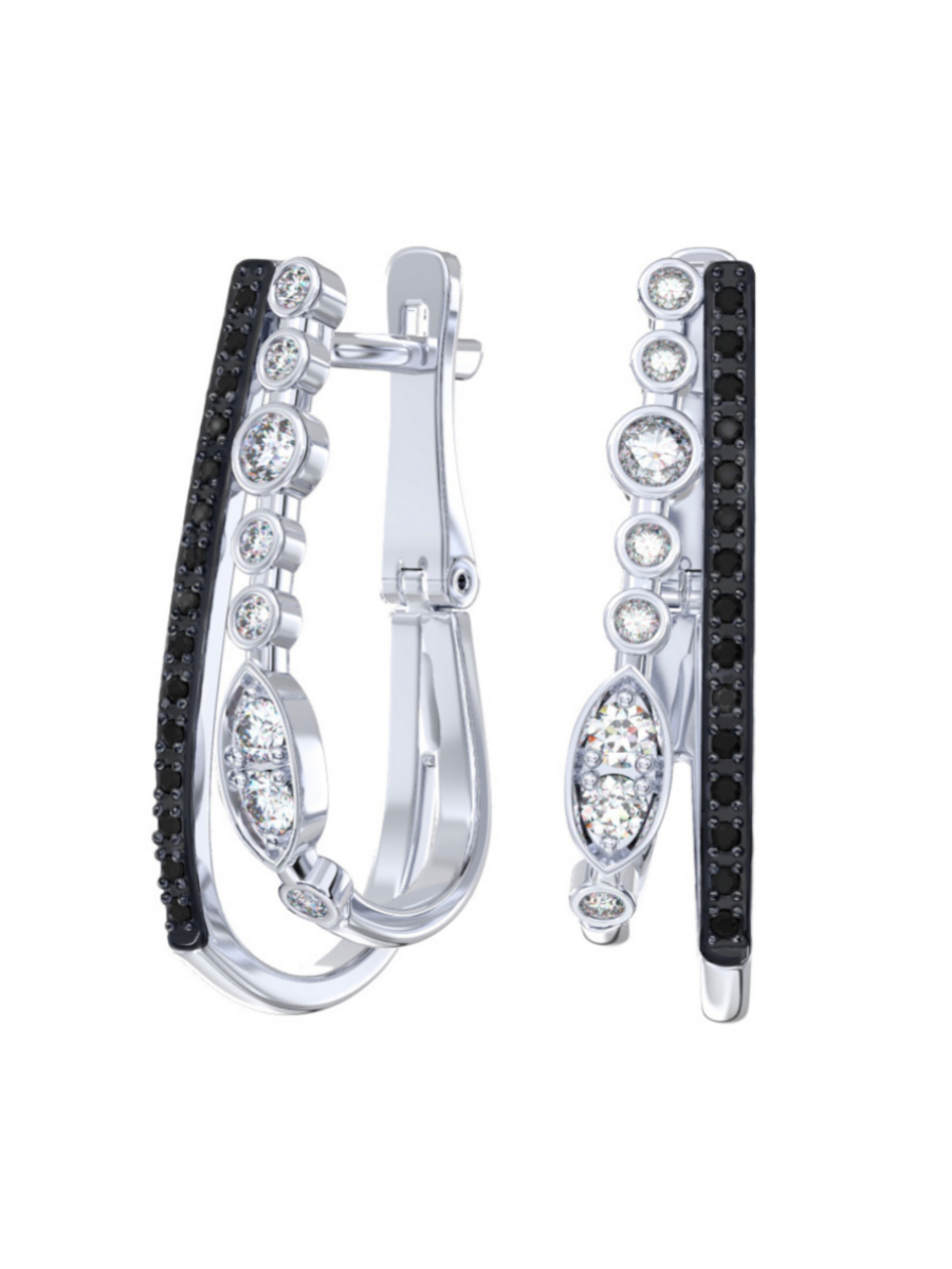 Моносерьга кафф из серебра 925 пробы с цветными фианитами