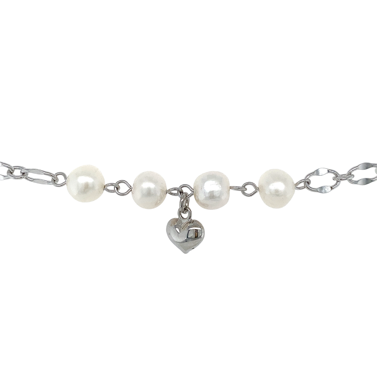 Браслет из серебра 925 пробы с жемчугом и цирконами