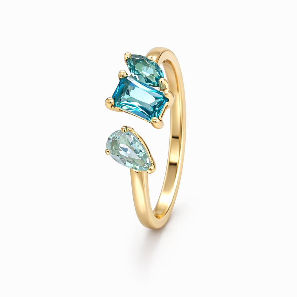 Кольцо из золота 585 пробы с топазами и топазом London Blue