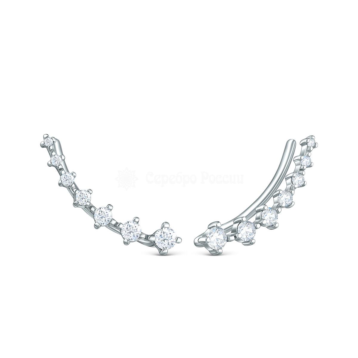 Моносерьга кафф из серебра 925 пробы с фианитами
