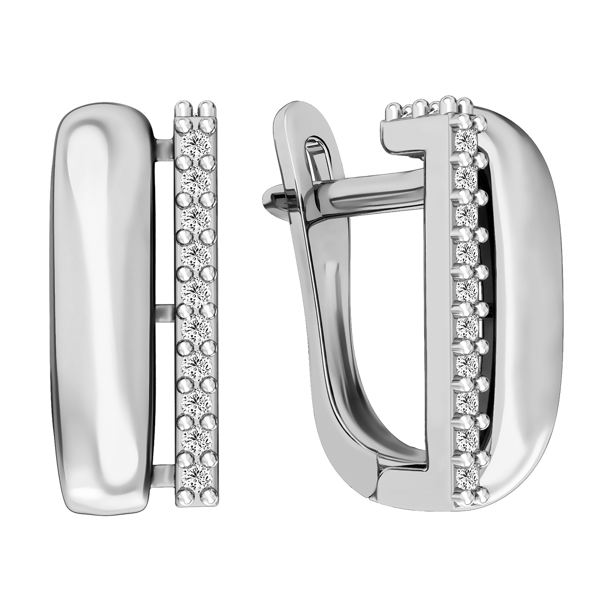 Серьги пусеты из белого золота 585 пробы с фианитами