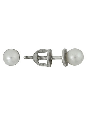 Серьги пусеты из серебра 925 пробы с искусственным жемчугом