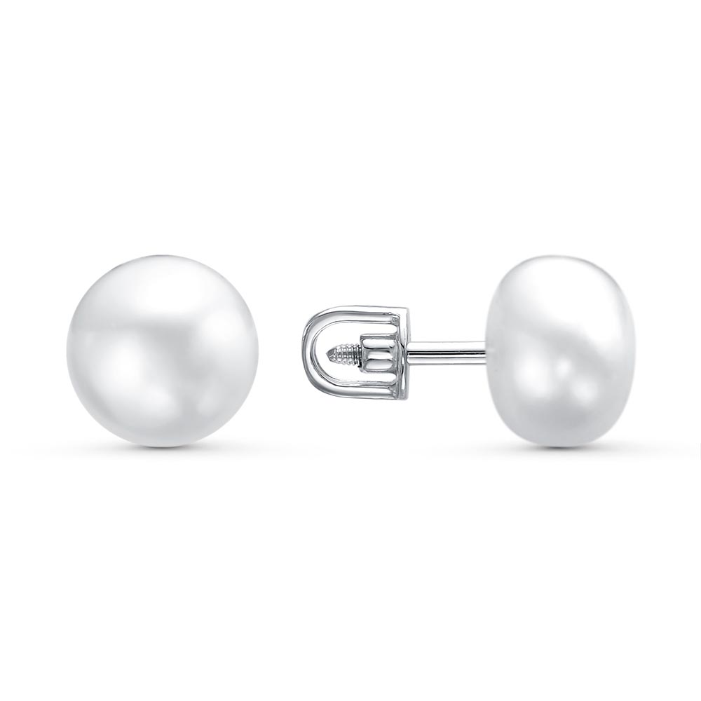 Серьги пусеты из серебра 925 пробы с жемчугом