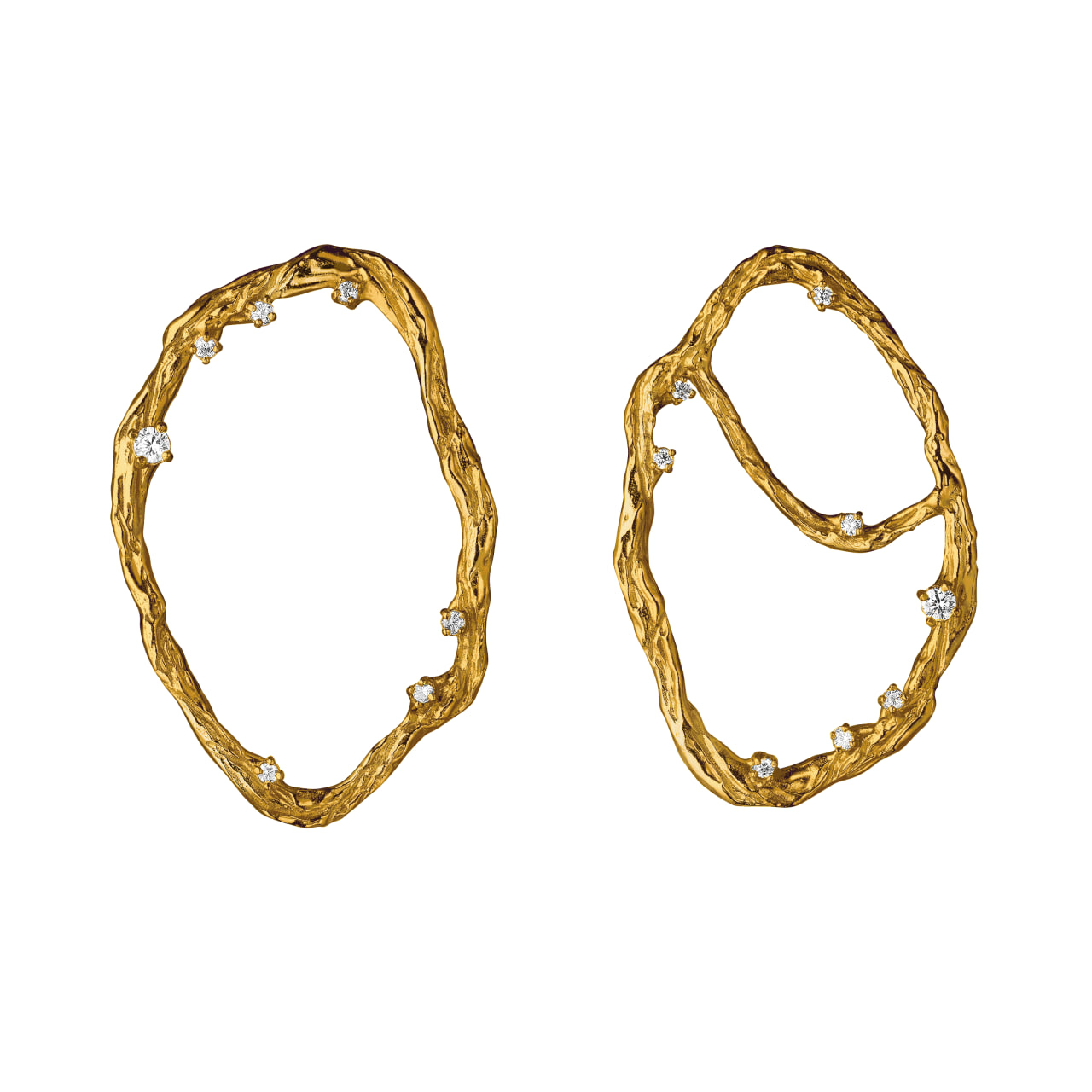 Серьги пусеты из серебра 925 пробы с позолотой, с фианитами