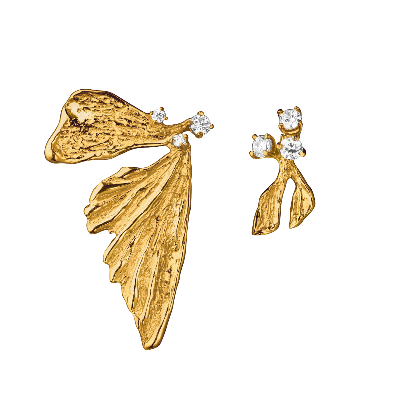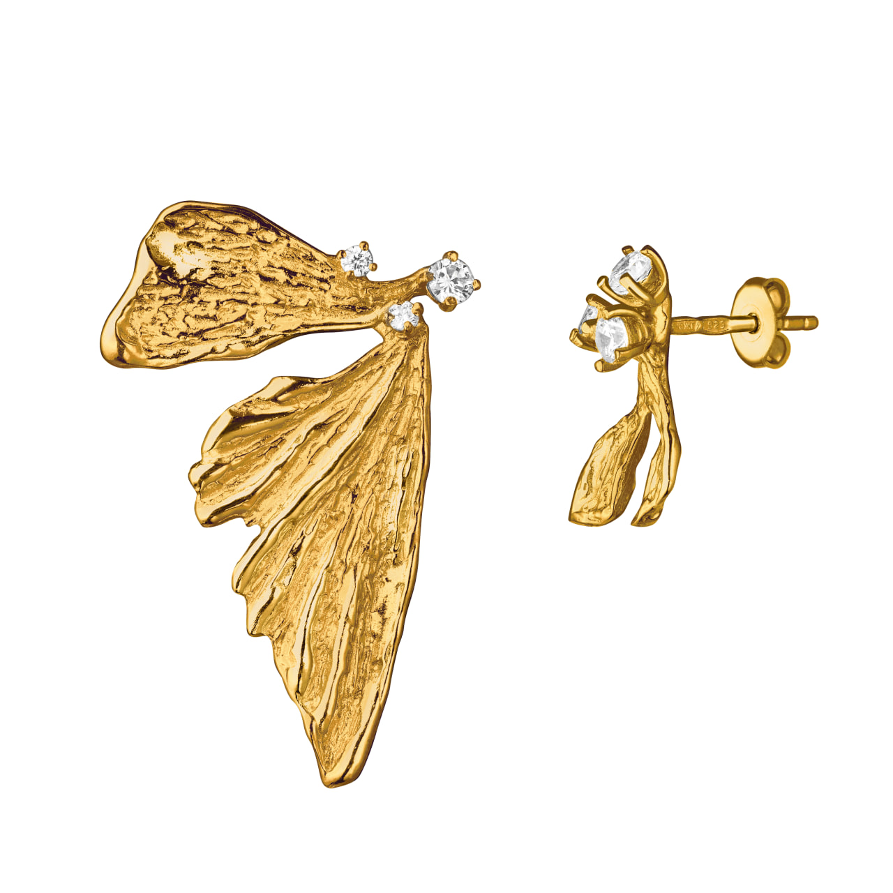 Серьги пусеты из серебра 925 пробы с позолотой, с фианитами