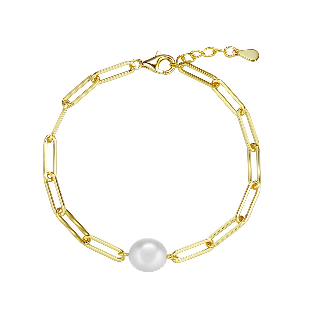 Браслет из серебра 925 пробы с позолотой и с жемчугом