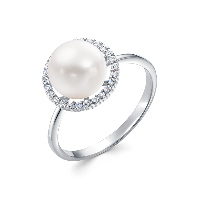 Кольцо из серебра 925 пробы с жемчугом и фианитами