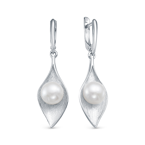Моносерьга пусета из серебр 925 пробы с позолотой, с жемчугом