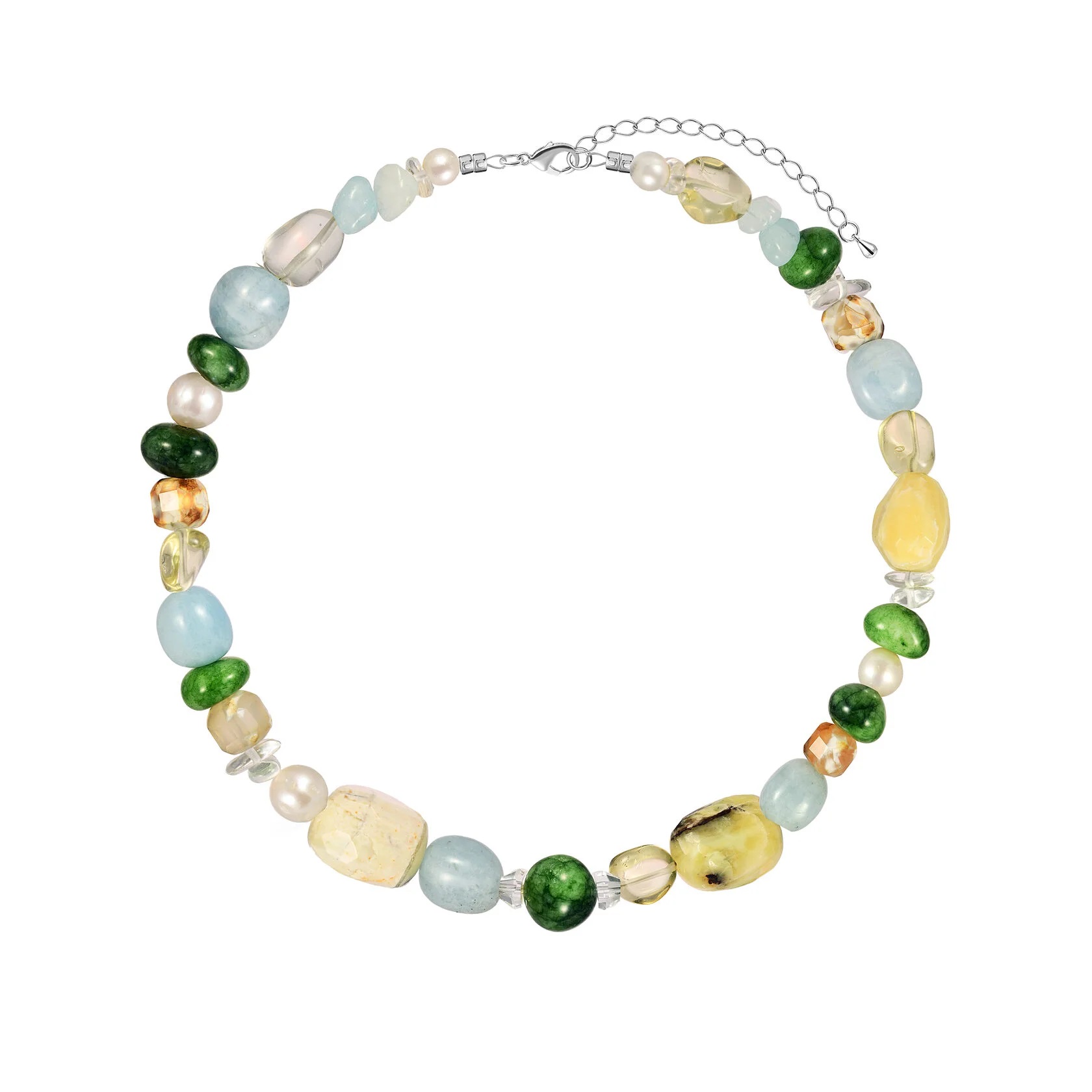 Колье аквамарин, жемчуг, агат, цитрин, кварц чокер earth