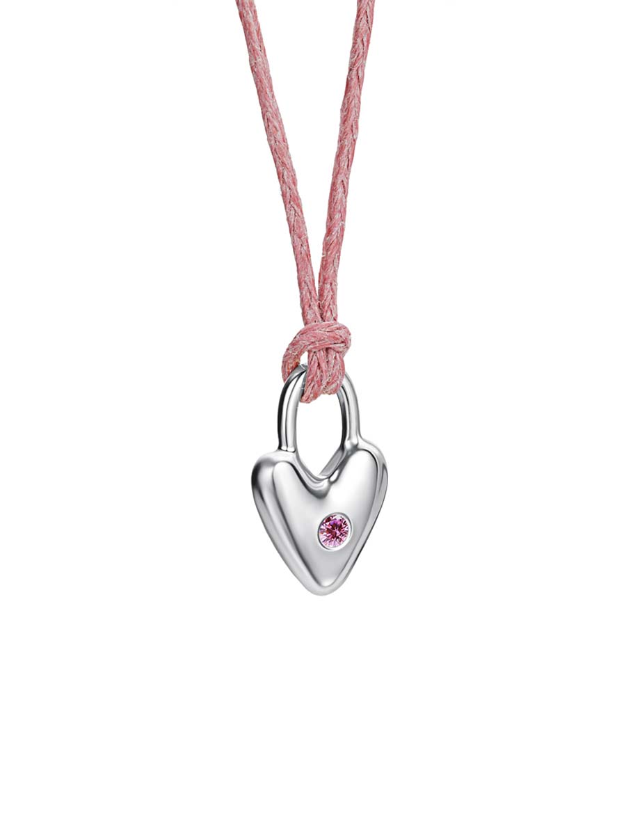Колье (925) текстиль, фианит замочек-сердце