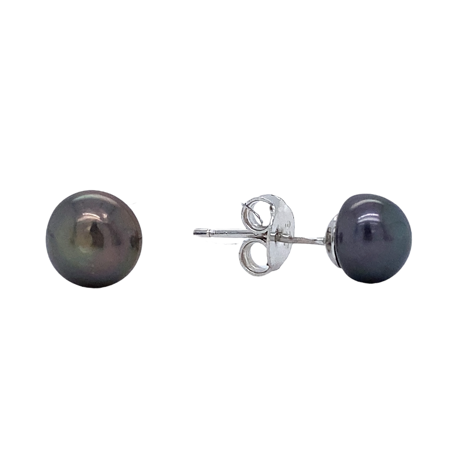 Серьги пусеты из серебра 925 пробы с черным жемчугом