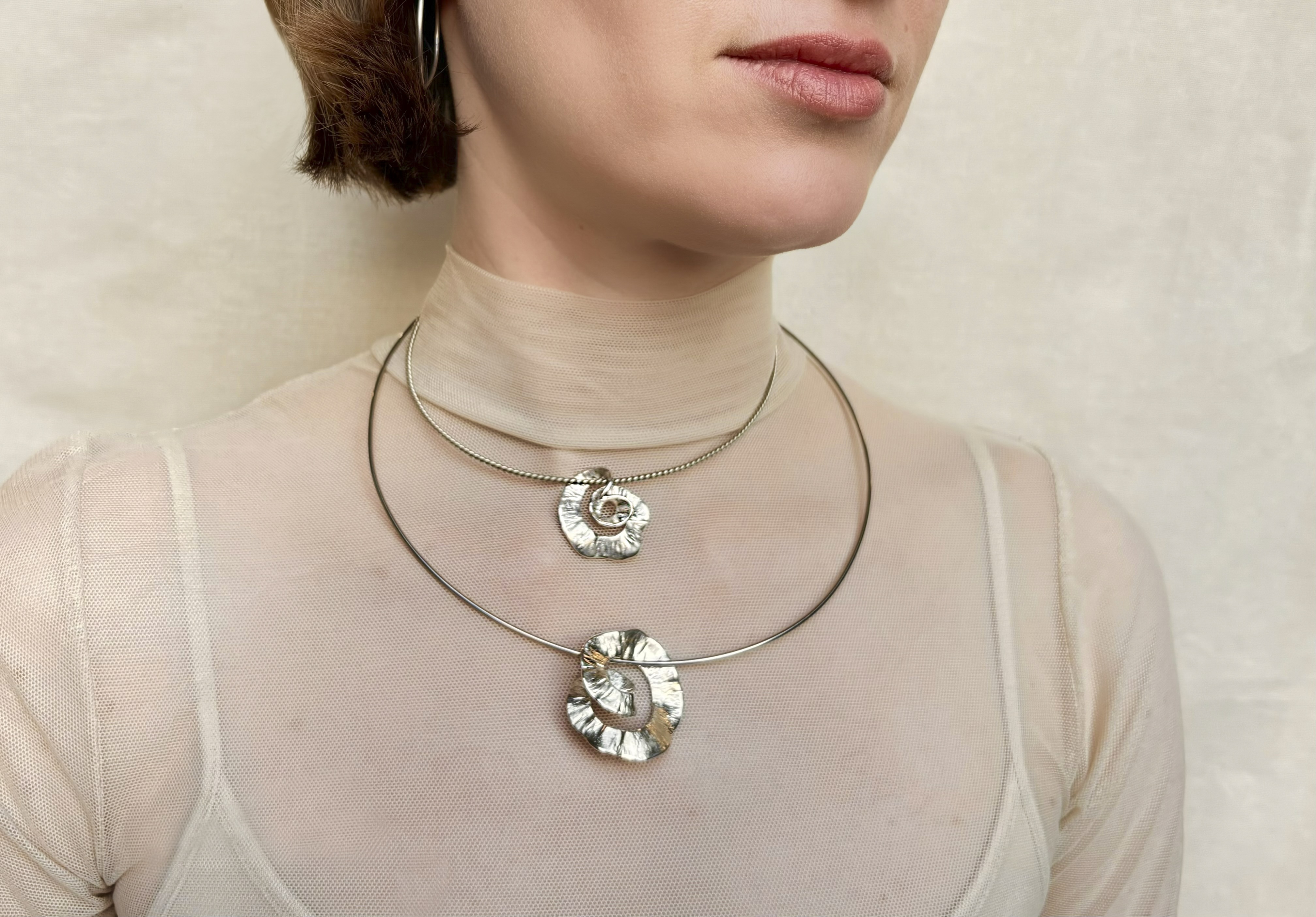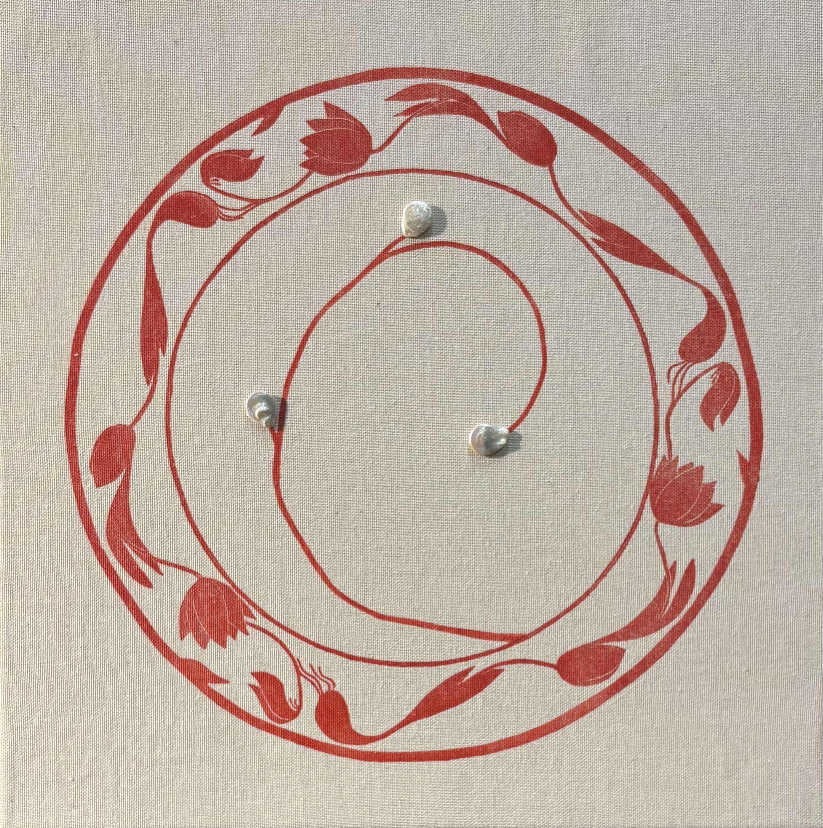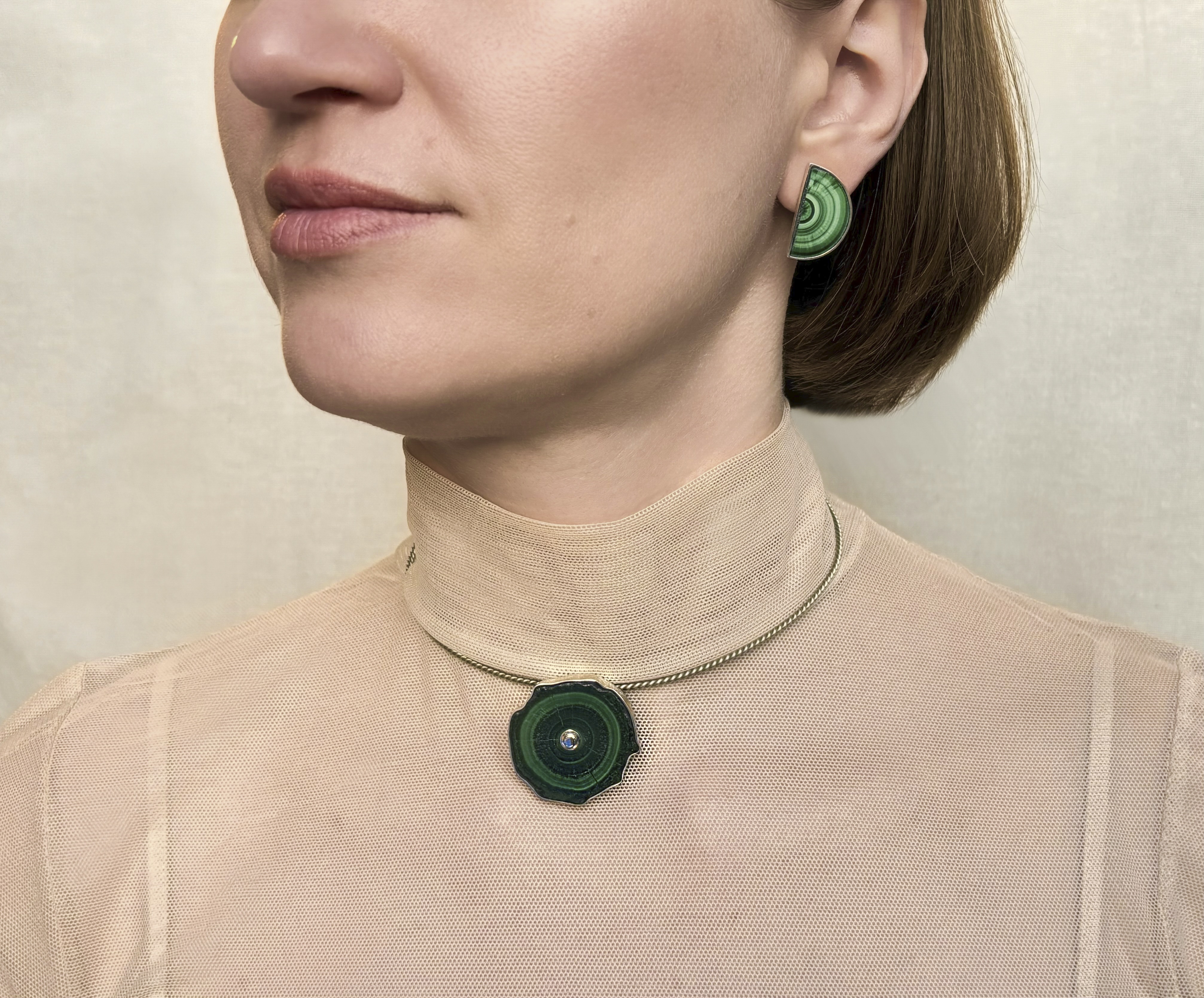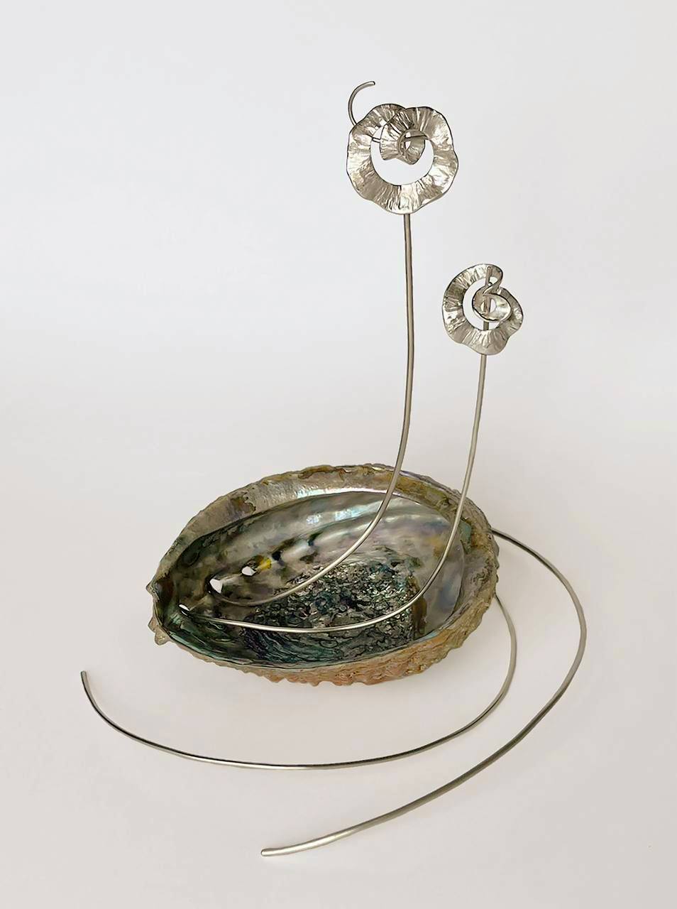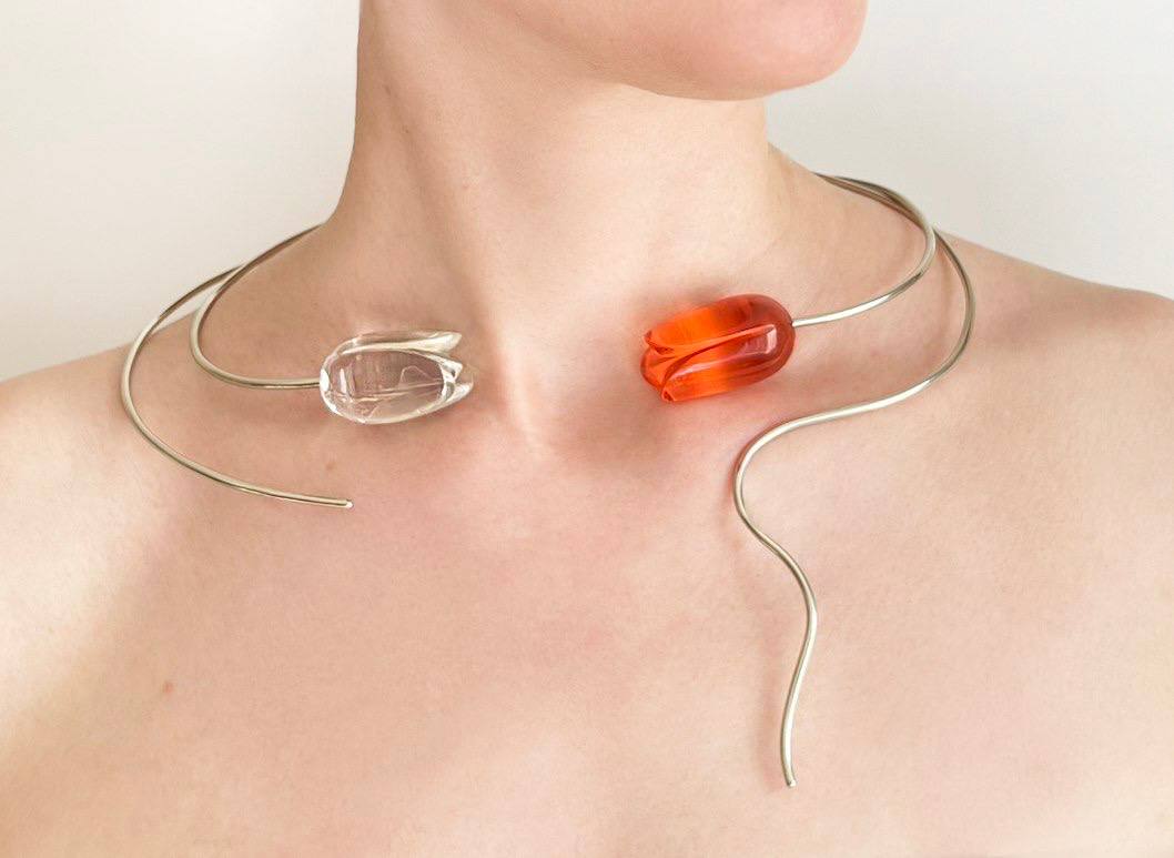 Любовь здесь имеет форму и вещество. Красный цвет напоминает о земном — крови, плоти, материнстве; зелёный малахит символизирует исцеление, плодородие и связь с живой энергией природы; ракушки и перламутр отсылают к женскому телу, жемчуг воплощает сокровенный опыт и внутреннюю мудрость, серебро открывает путь к духовному и утончённому. Взаимодействуя, эти материалы становятся метафорой женской природы — хрупкой и мощной, уязвимой и бесконечной.
