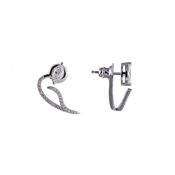 Серьги пусеты из серебра 925 пробы с позолотой, с фианитами