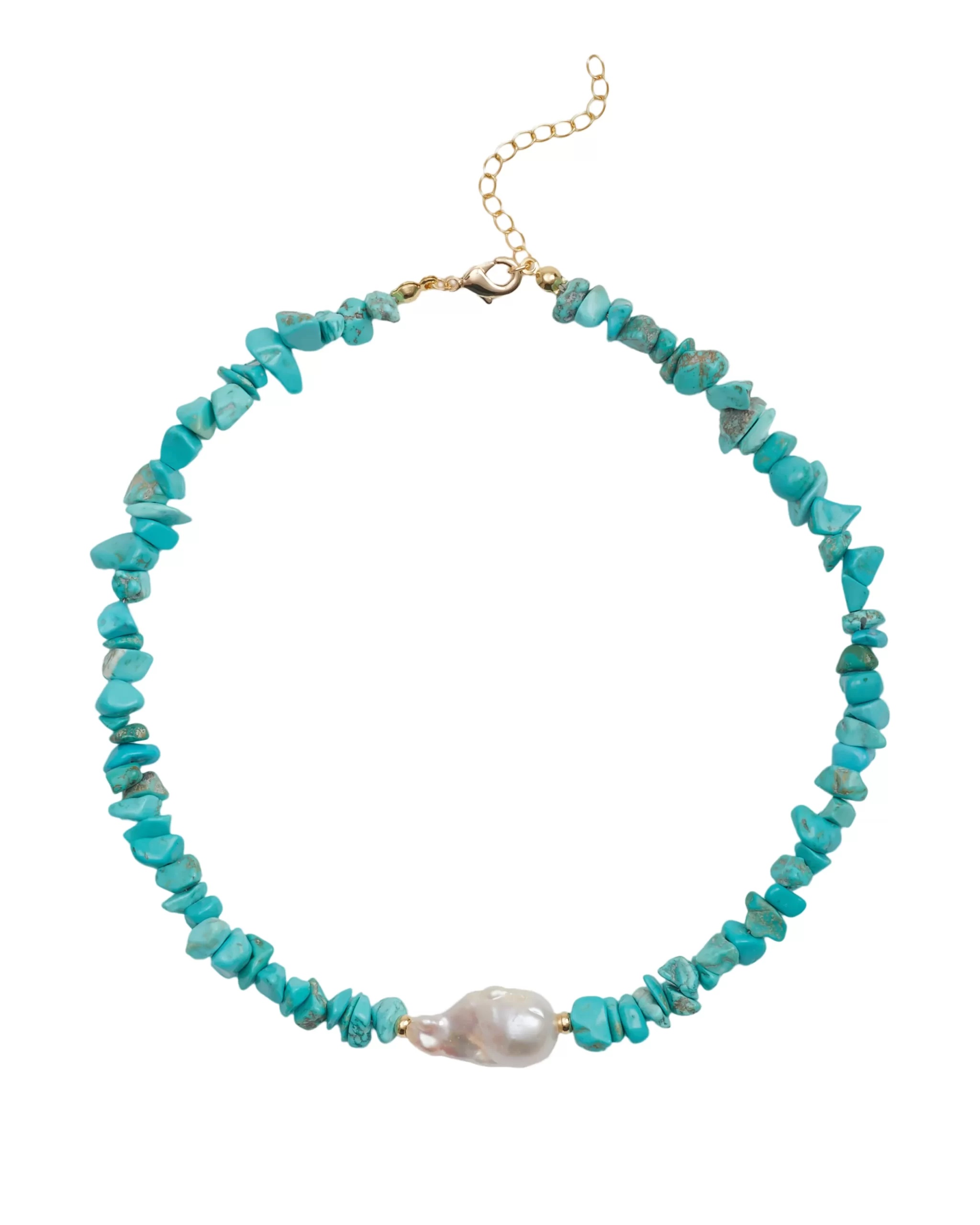 Колье синт.бирюза, жемчуг, сталь