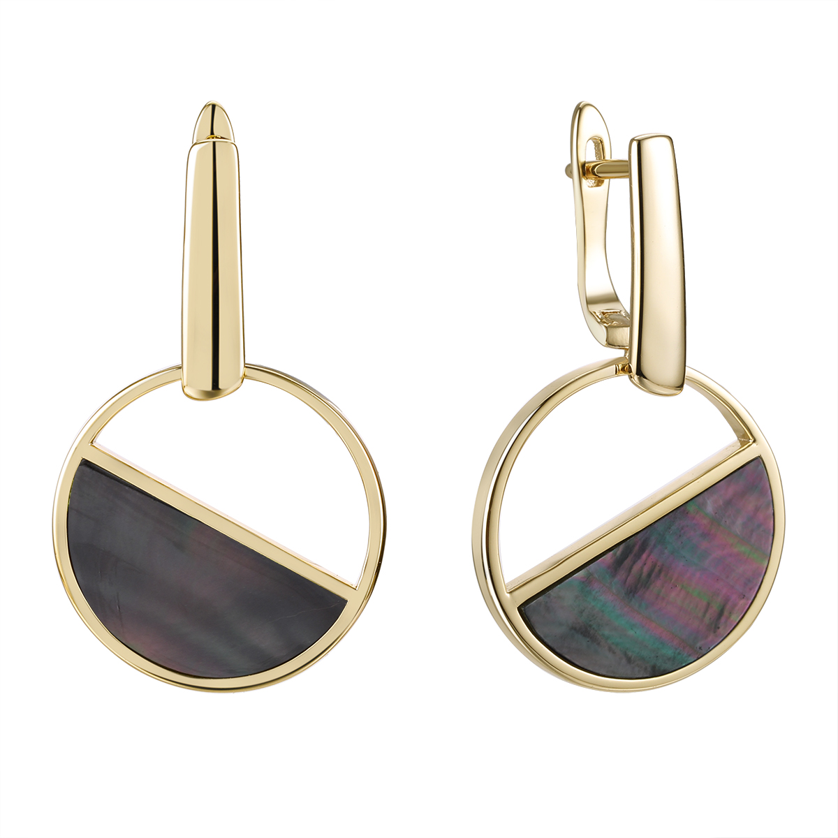 Серьги из серебра 925 пробы с позолотой, с перламутром