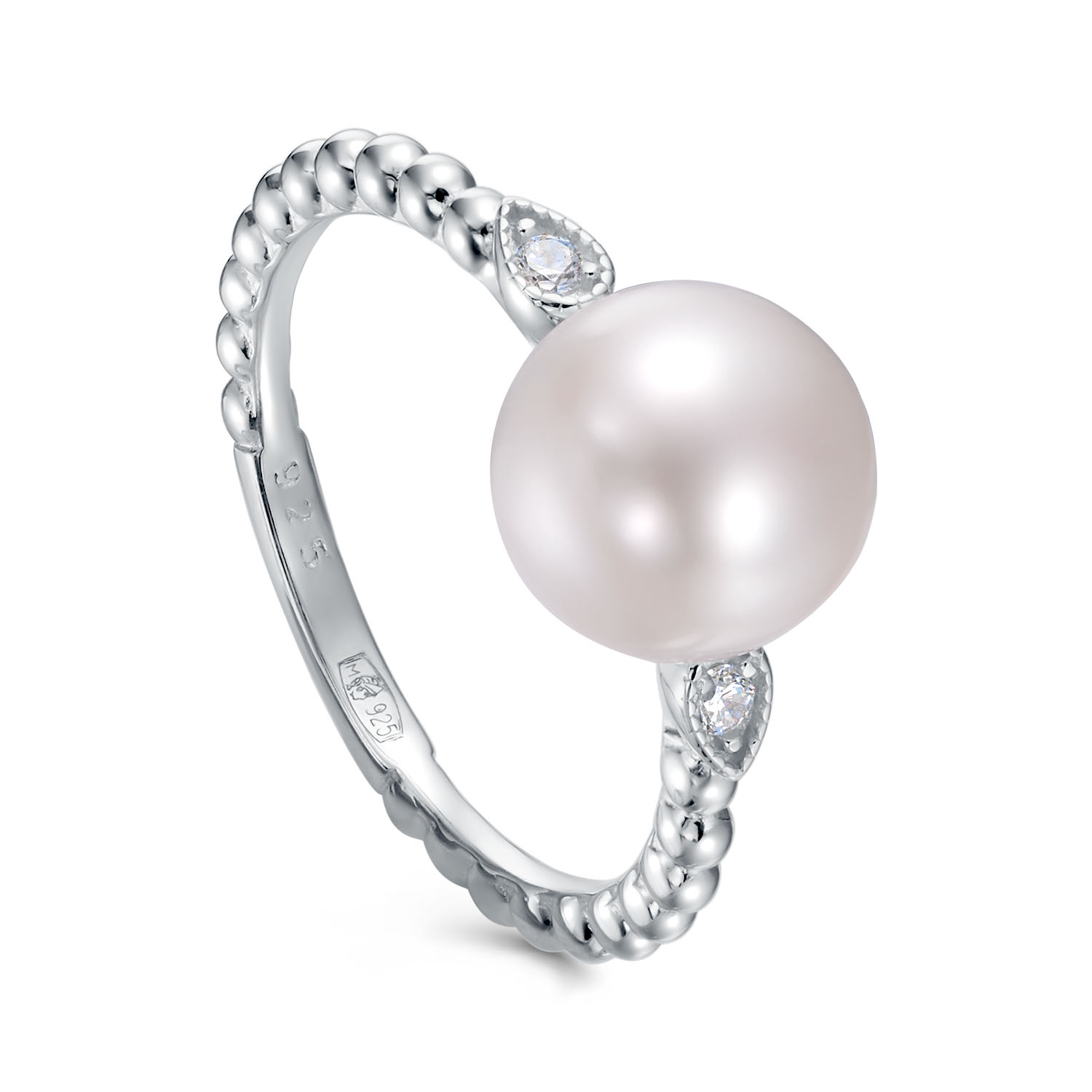 Кольцо из серебра 925 пробы с жемчугом и фианитами