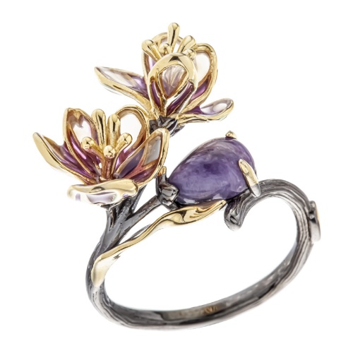 Кольцо (925) чароит, эмаль