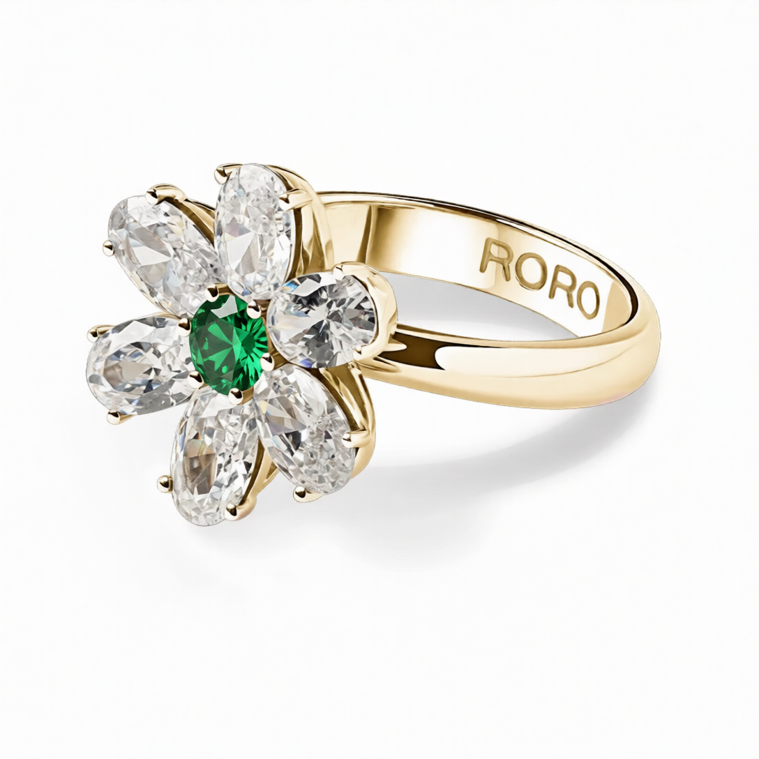Кольцо из серебра 925 пробы с позолотой, с цветными цирконами