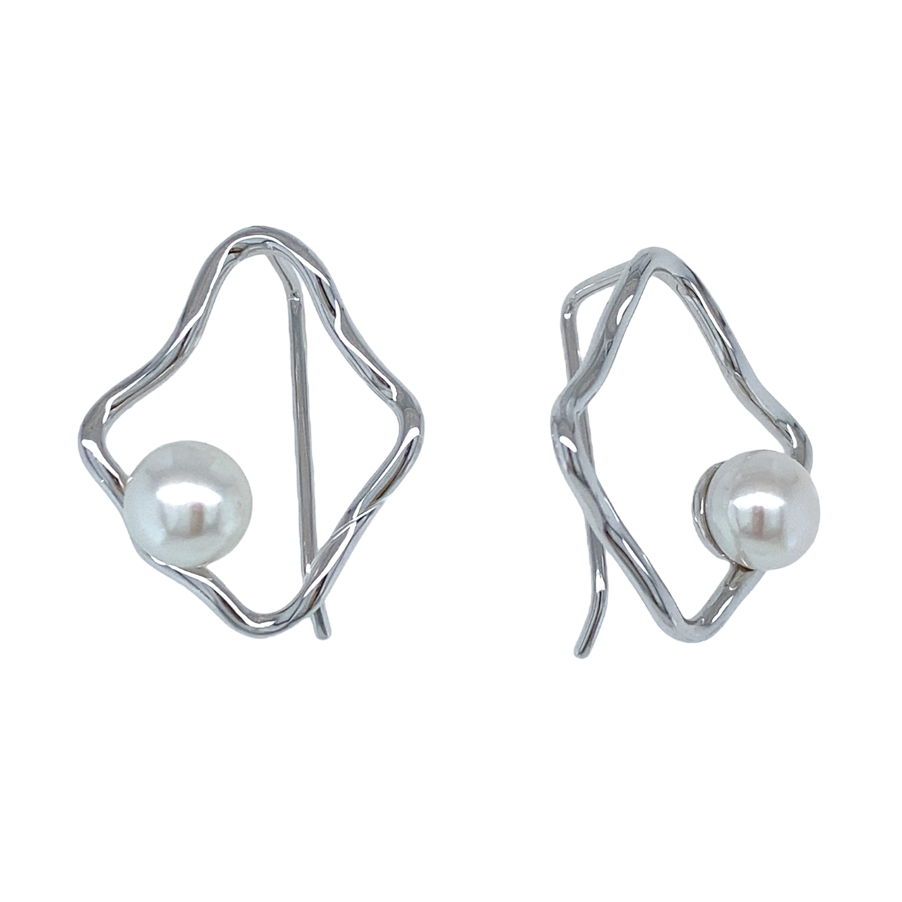 Серьги из серебра 925 пробы с жемчугом и фианитами