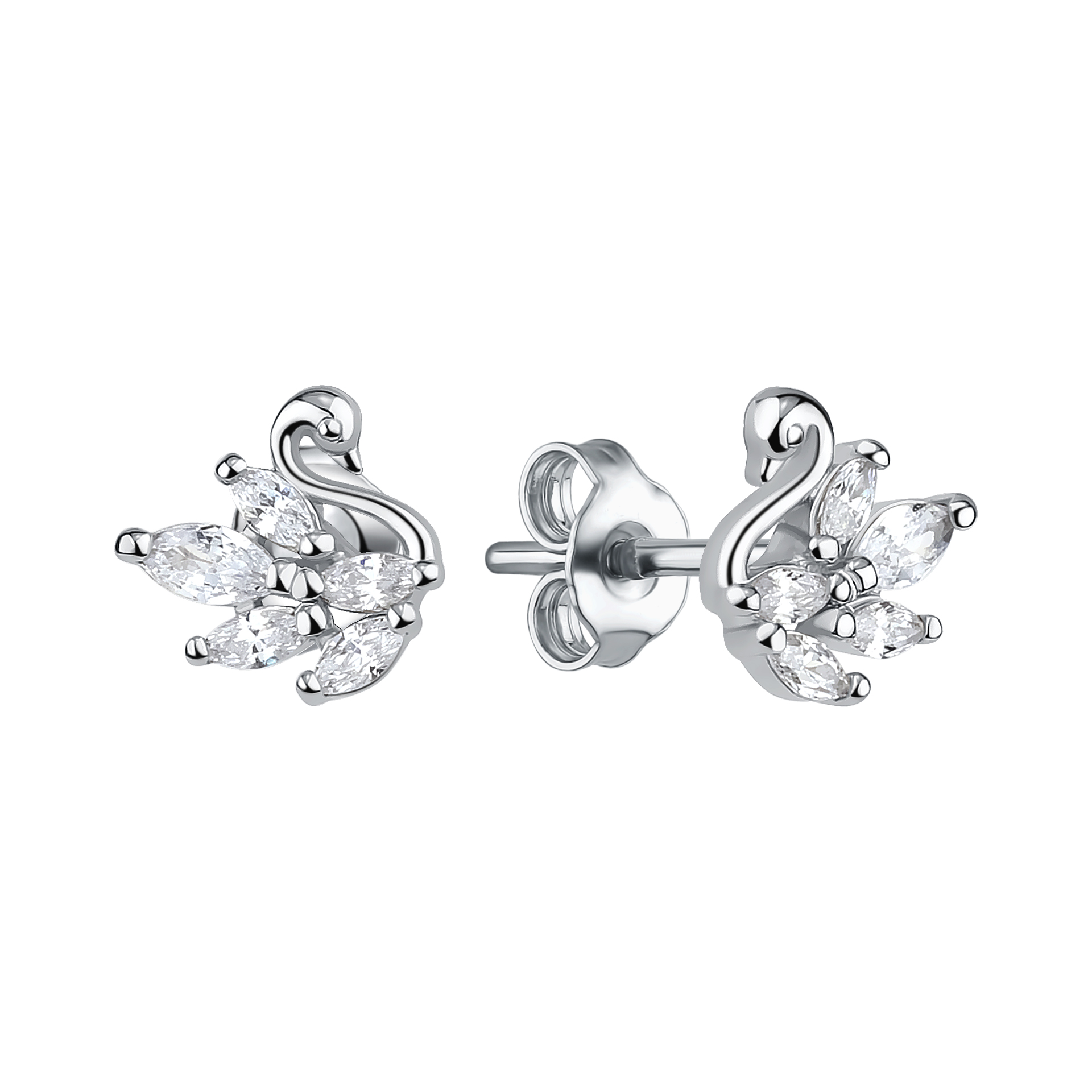Серьги пусеты из серебра 925 пробы с цирконами