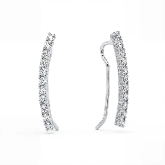 Серьги пусеты из белого золота 585 пробы с фианитами