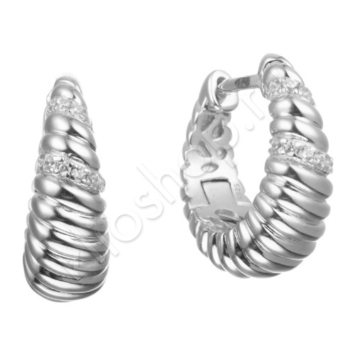 Серьги пусеты из серебра 925 пробы с позолотой, с фианитами