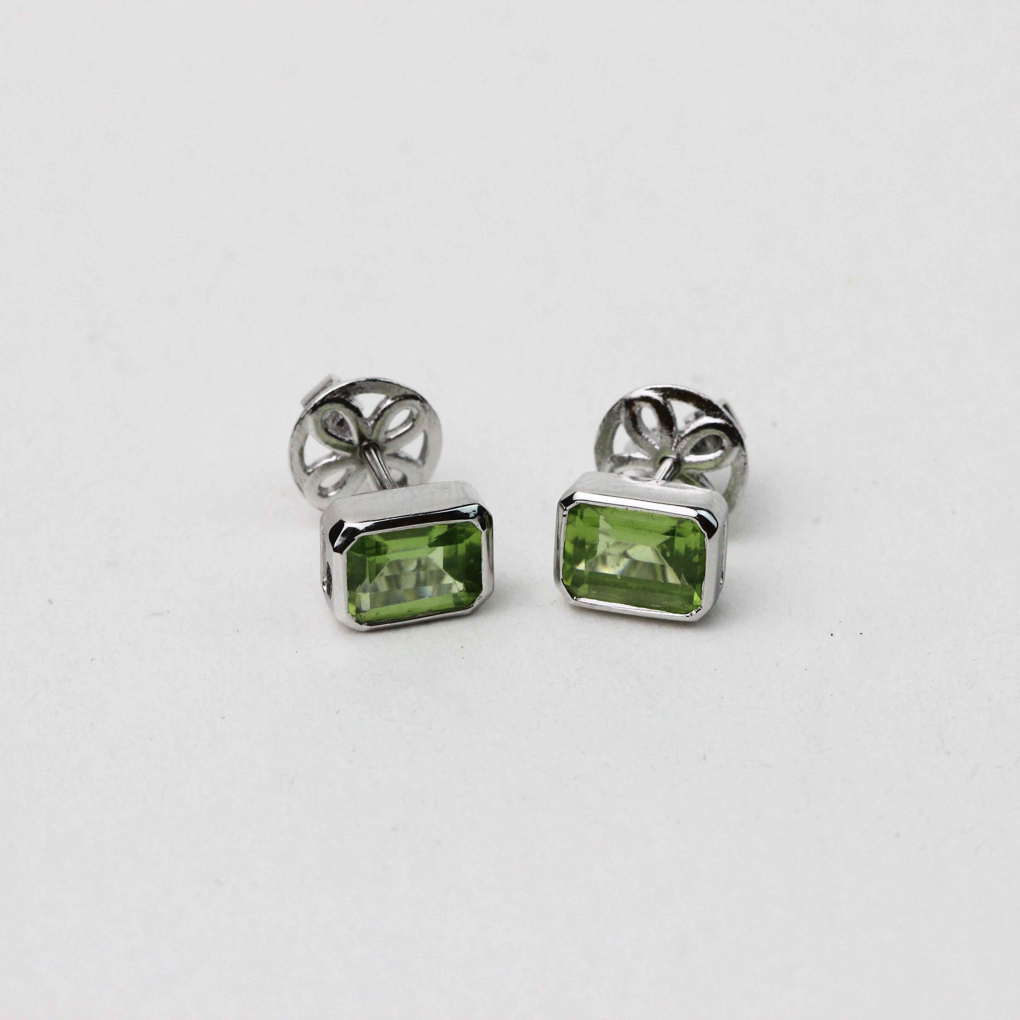 Серьги пусеты из серебра 925 пробы с хризолитами