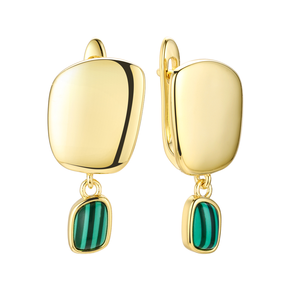Серьги из серебра 925 пробы с позолотой, с искусственным малахитом