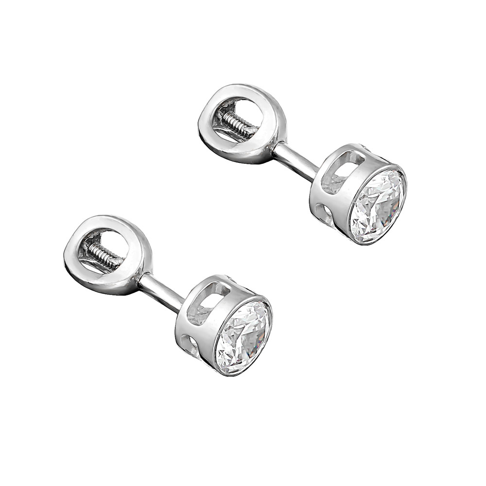 Серьги пусеты из серебра 925 пробы с цирконами