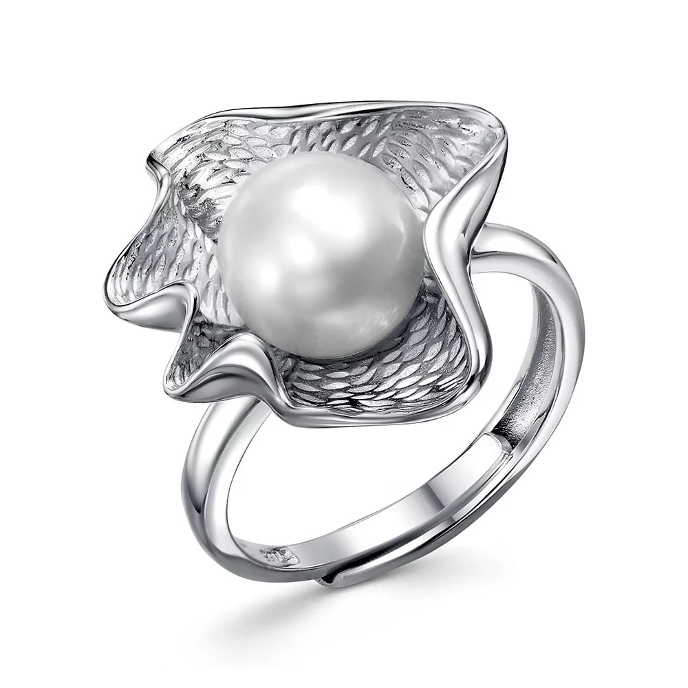 Колье из серебра 925 пробы с жемчугом и фианитами