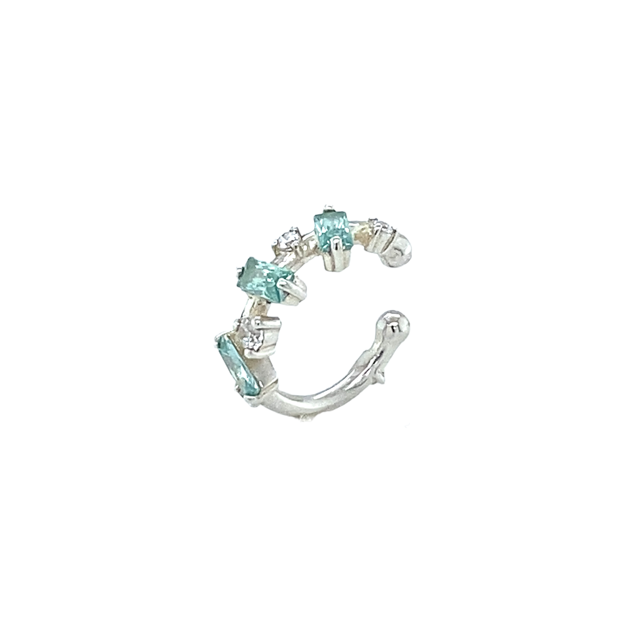 Моносерьга кафф из серебра 925 пробы с цветными фианитами