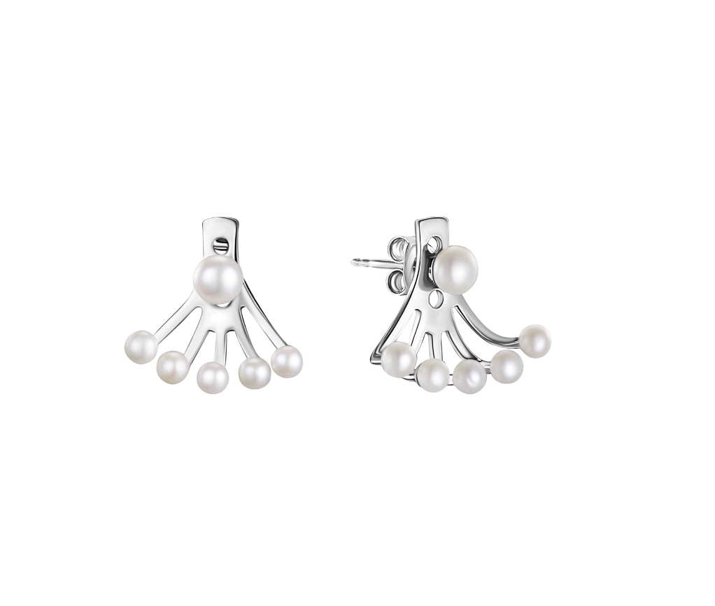Серьги из серебра 925 пробы с жемчугом и фианитами
