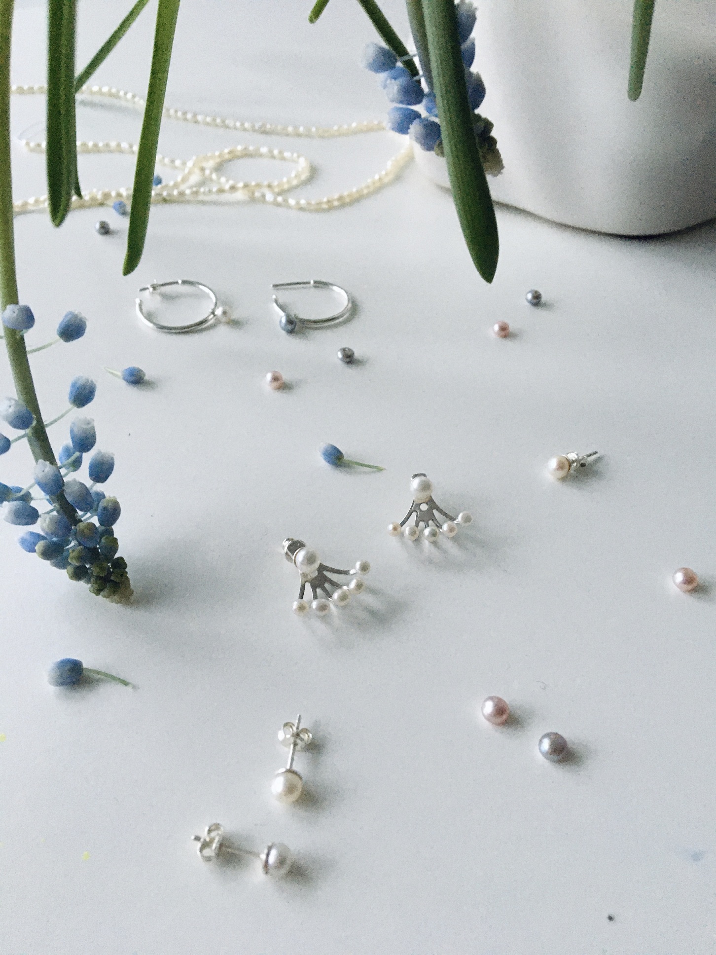 Серьги пусеты из серебра 925 пробы с жемчугом