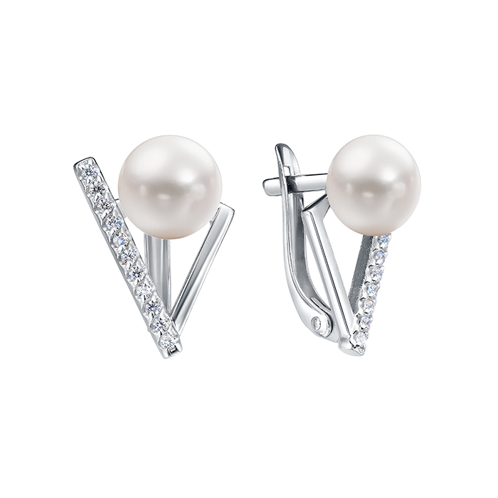 Серьги из серебра 925 пробы с жемчугом и фианитами